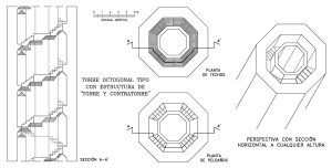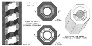 Observando la perspectiva anterior, comprobamos que la sección horizontal a cualquier altura es muy maciza, quedando como huecos solamente el de la estancia central y el de la escalera, el cual no abarca todo el octógono sino solamente la mitad del mismo. También vemos en la sección vertical que, en cualquier punto que nos situemos en el interior de la escalera, la obra maciza de dos metros que tenemos sobre nuestras cabezas hasta la siguiente vuelta no es una correa de escalera, sino el muro que se cierra por encima de nosotros para volver a abrirse en la vuelta superior. Para una mejor comprensión de lo explicado, adjunto a continuación una perspectiva en sección de la misma torre tomada del trabajo “Torres mudéjares aragonesas” de Francisco Íñiguez (1937).