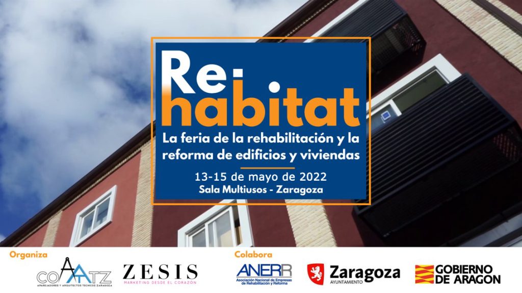 Llega a Zaragoza la Feria Re-habitat, Feria de Rehabilitación y Reforma de Edificios y Viviendas, que se celebrará en la Sala Multiusos del Auditorio de Zaragoza del 13 al 15 de mayo de 2.022.