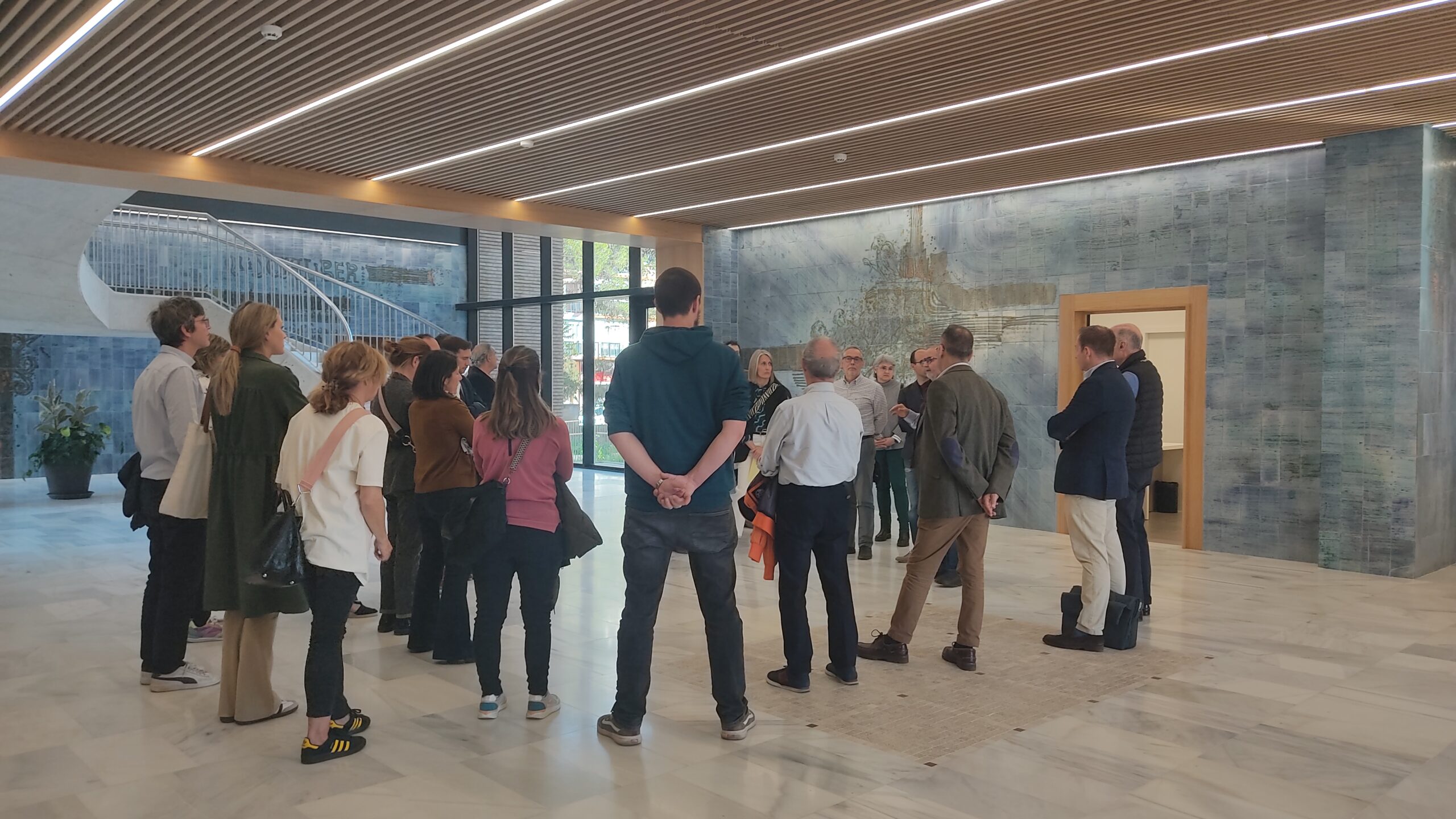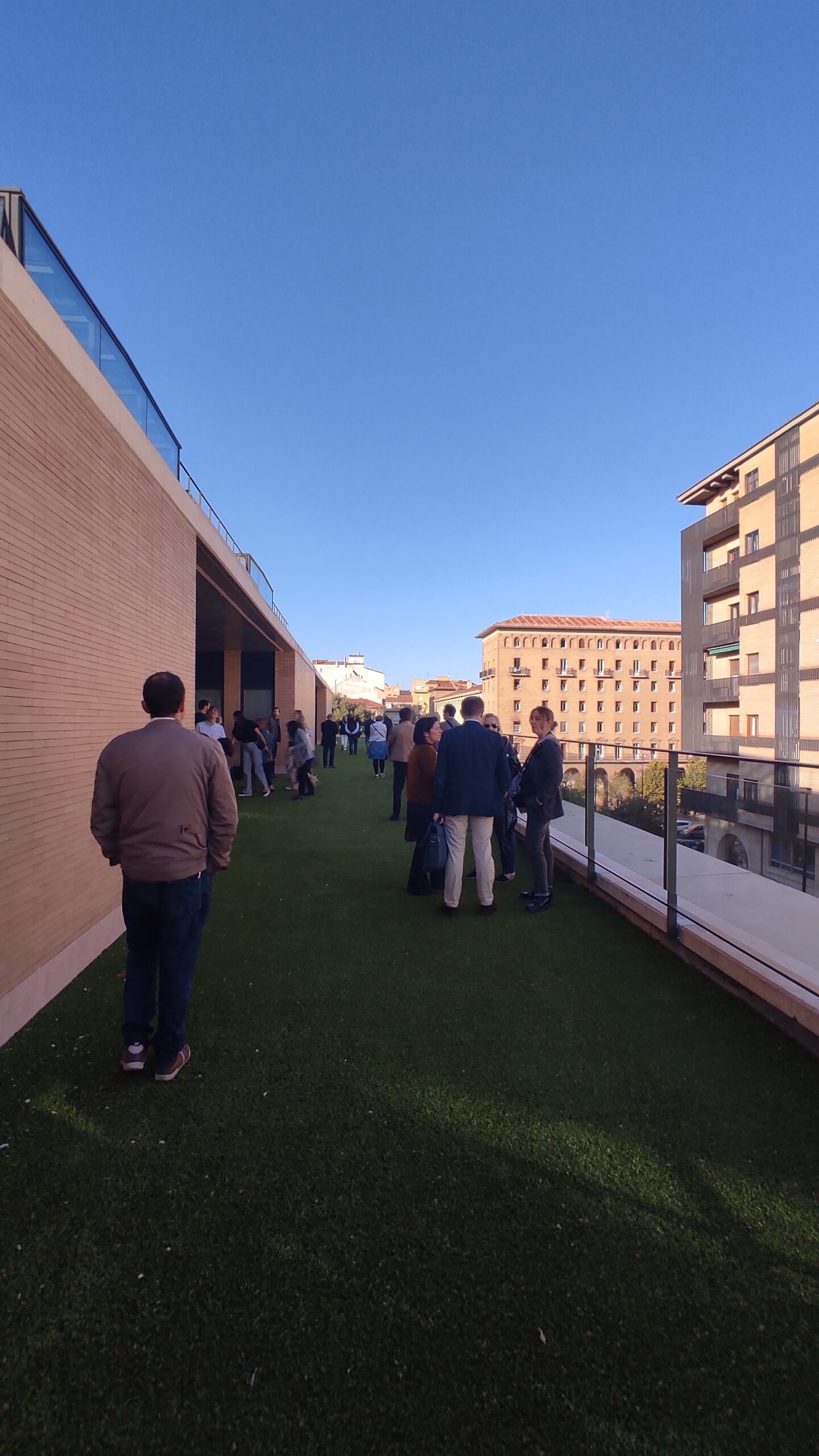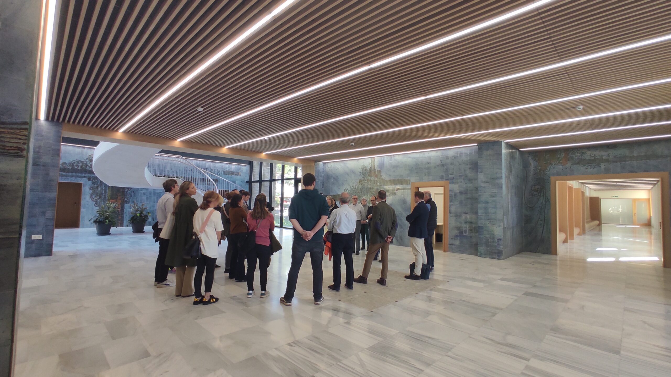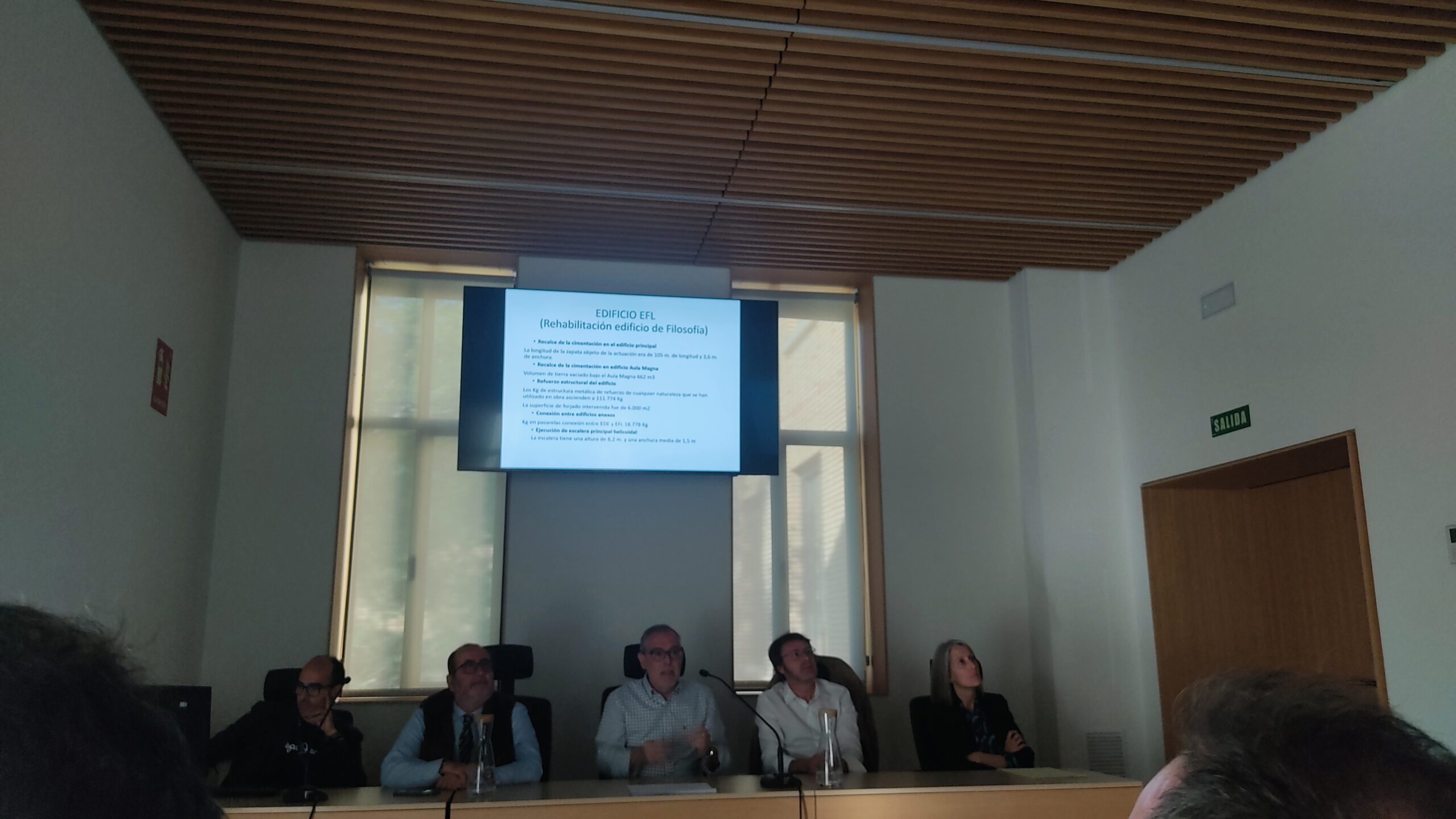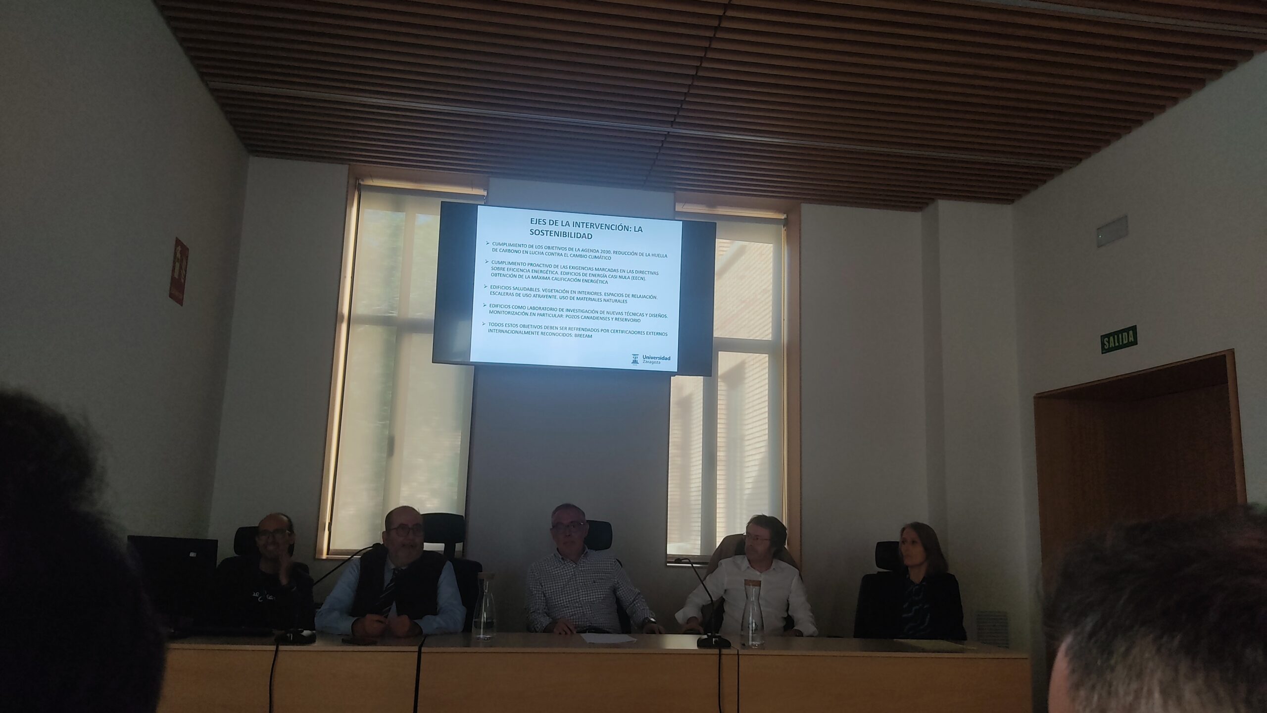 La visita estuvo guiada y explicada por integrantes de la Unidad Técnica de Construcciones y Energía de la Universidad de Zaragoza, Carlos González y David Cambra. La Facultad de Filosofía y Letras de la Universidad de Zaragoza, se presenta en la actualidad como un edificio con consumo de energía cero o nulo ECCN, tras la reforma y ampliación de su edificación que le llevo a alcanzar el Premio a Mejor Iniciativa Pública en Edificación en la pasada Gala Aragonesa de la Edificación. Se trata de un proyecto innovador con los mejores estándares de diseño, eficiencia energética de las instalaciones, circularidad del proceso constructivo, confortabilidad y accesibilidad universal, cuyo arquitecto de la obra fue Jaime Magén.