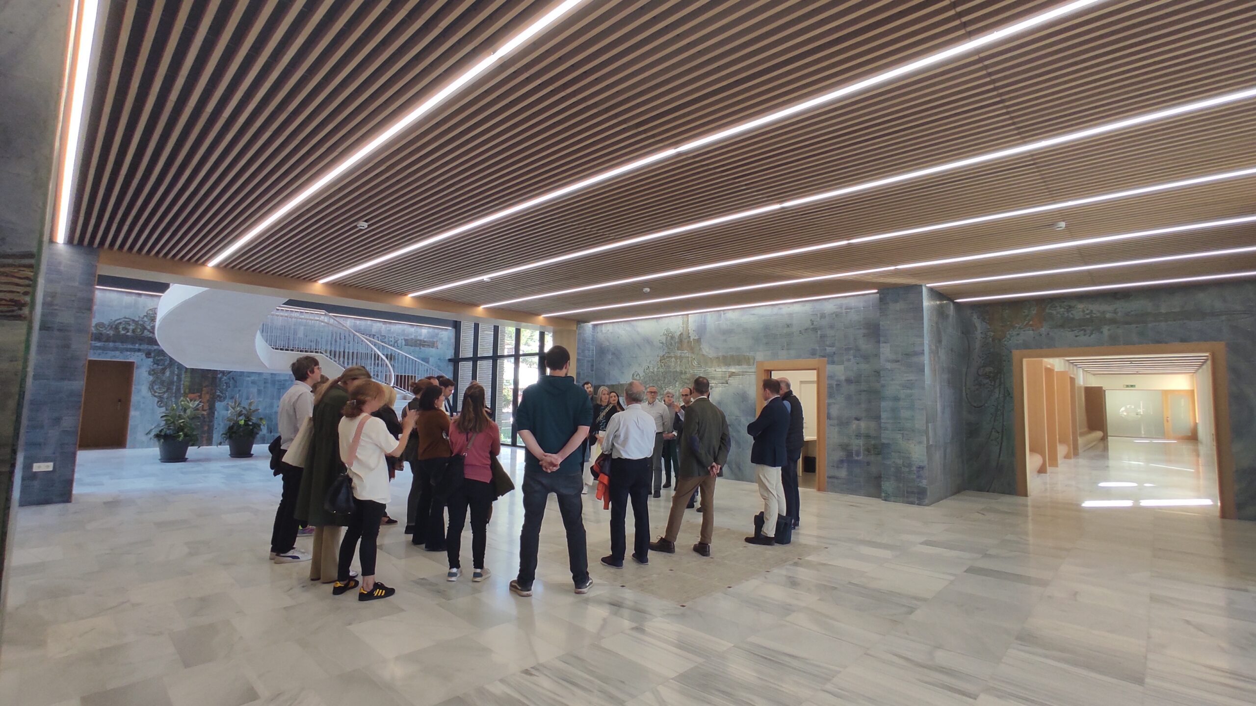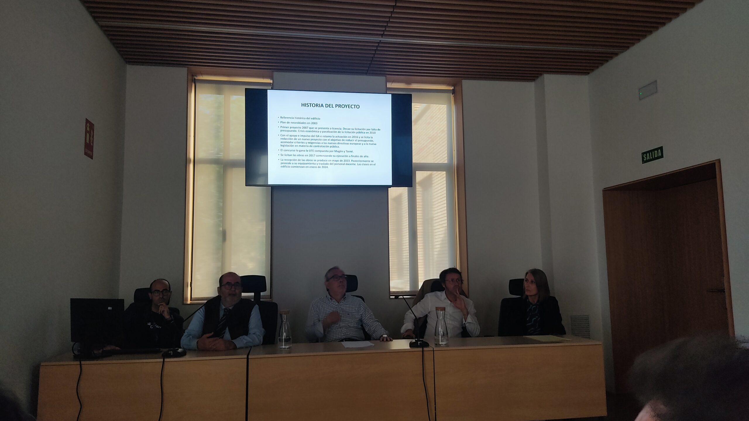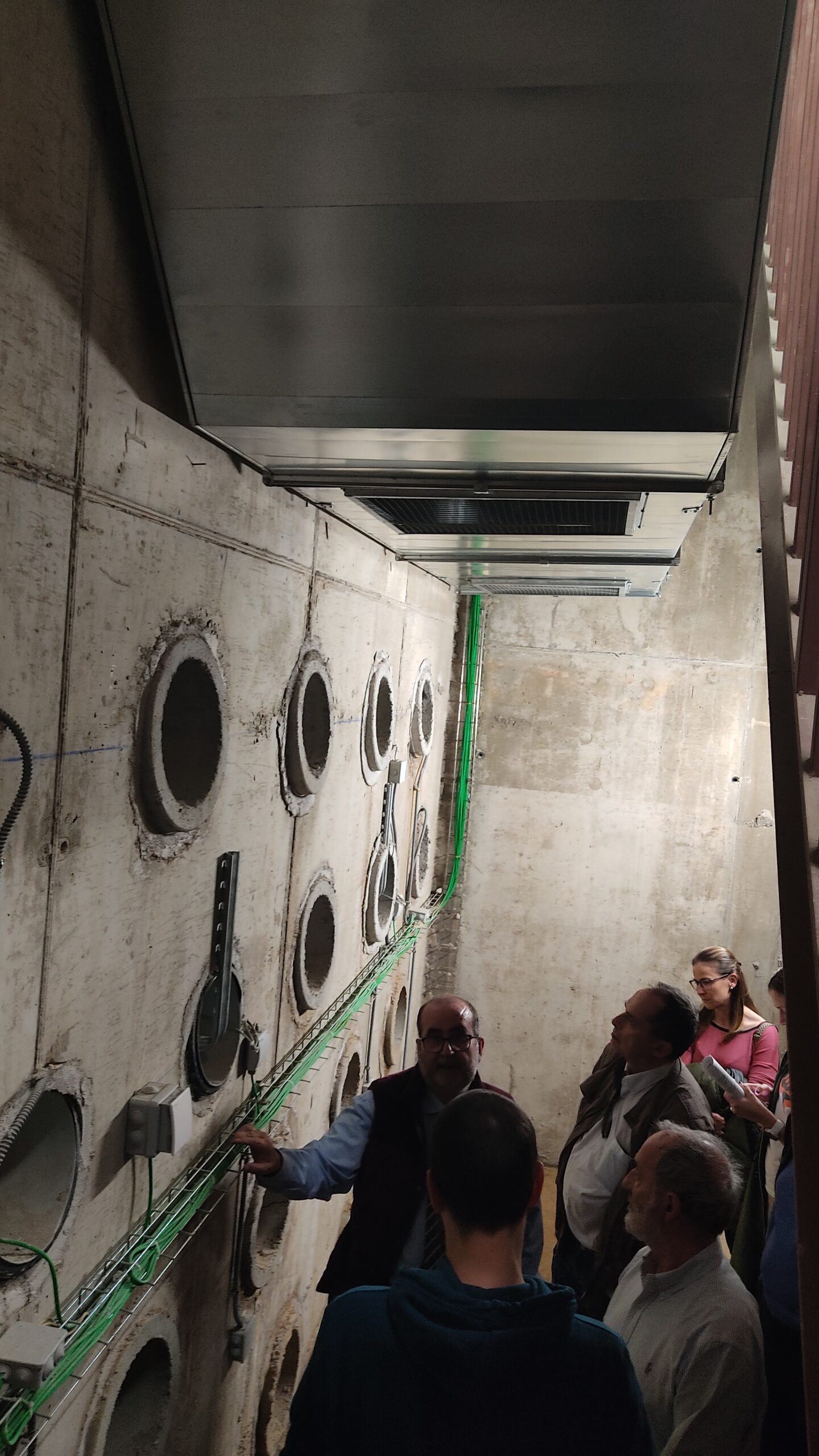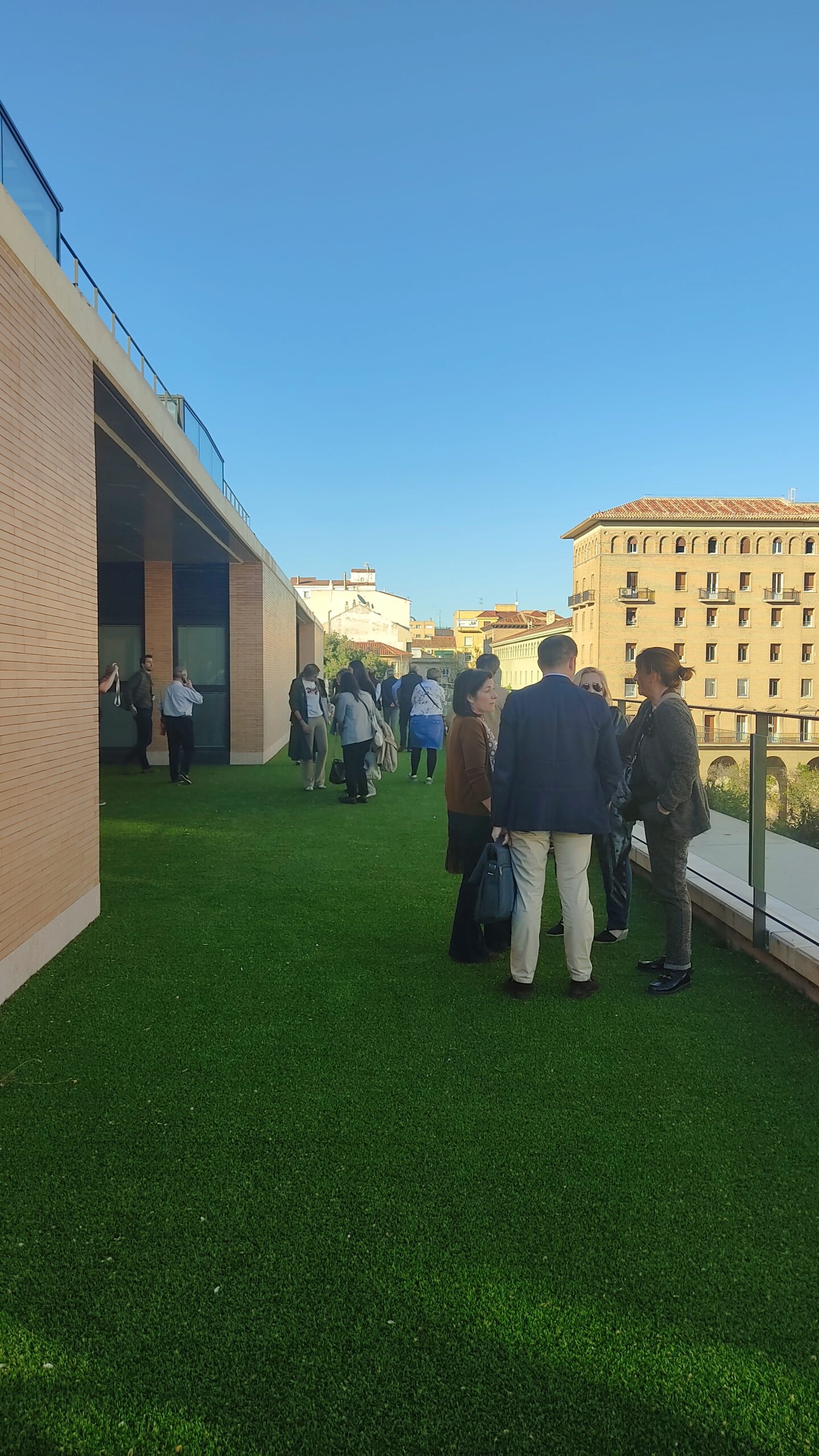 La visita estuvo guiada y explicada por integrantes de la Unidad Técnica de Construcciones y Energía de la Universidad de Zaragoza, Carlos González y David Cambra. La Facultad de Filosofía y Letras de la Universidad de Zaragoza, se presenta en la actualidad como un edificio con consumo de energía cero o nulo ECCN, tras la reforma y ampliación de su edificación que le llevo a alcanzar el Premio a Mejor Iniciativa Pública en Edificación en la pasada Gala Aragonesa de la Edificación. Se trata de un proyecto innovador con los mejores estándares de diseño, eficiencia energética de las instalaciones, circularidad del proceso constructivo, confortabilidad y accesibilidad universal, cuyo arquitecto de la obra fue Jaime Magén.