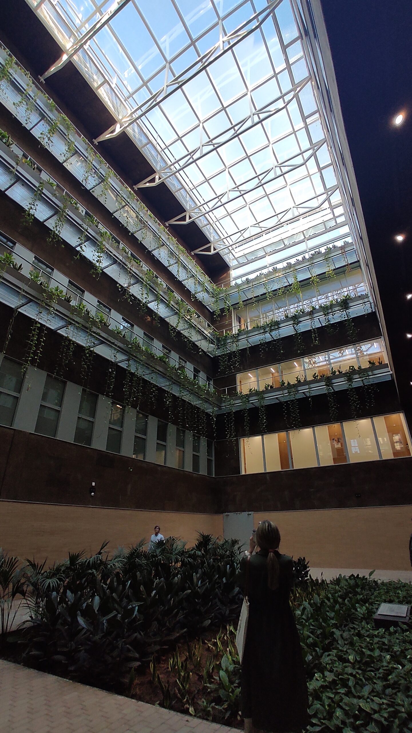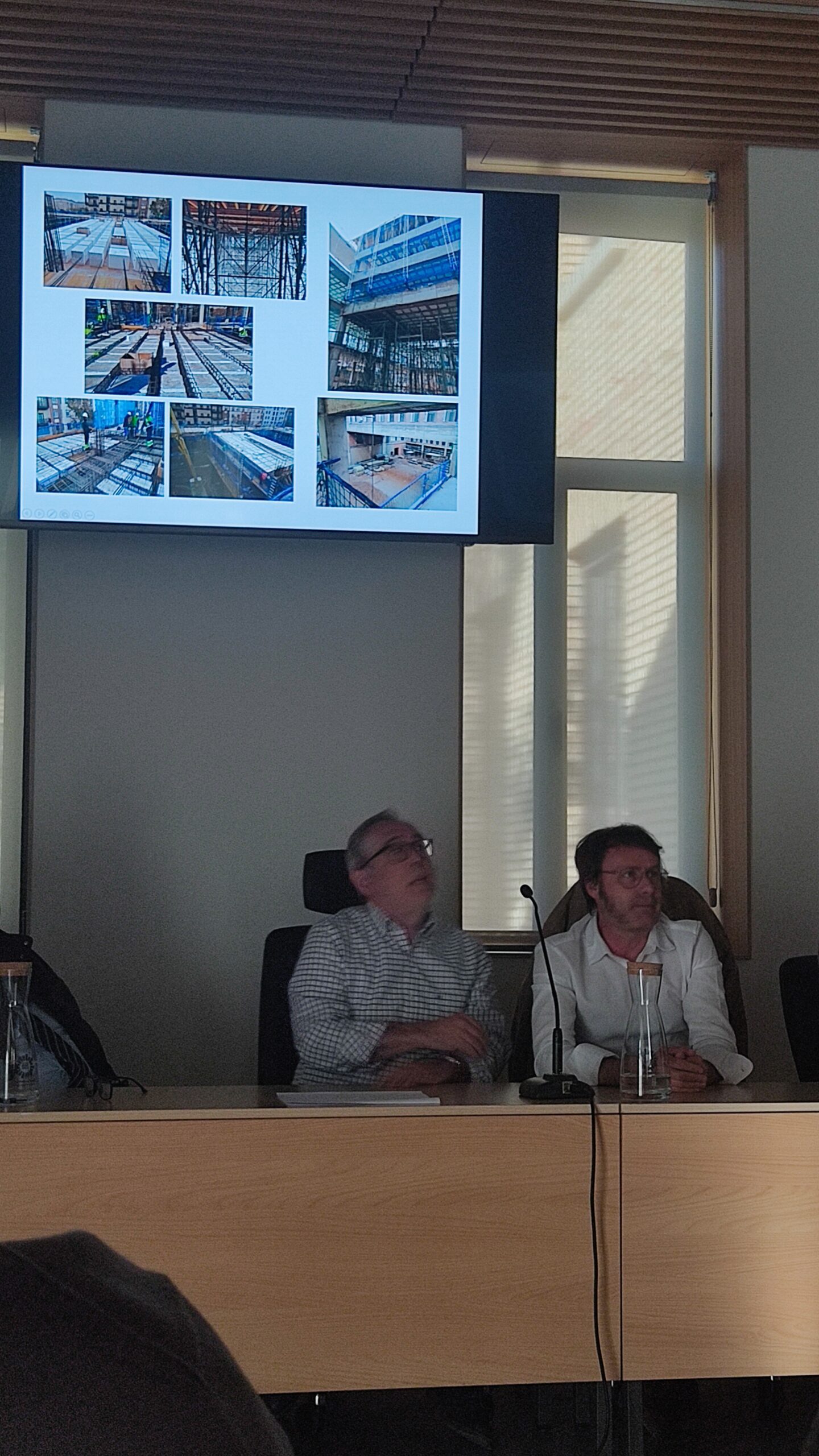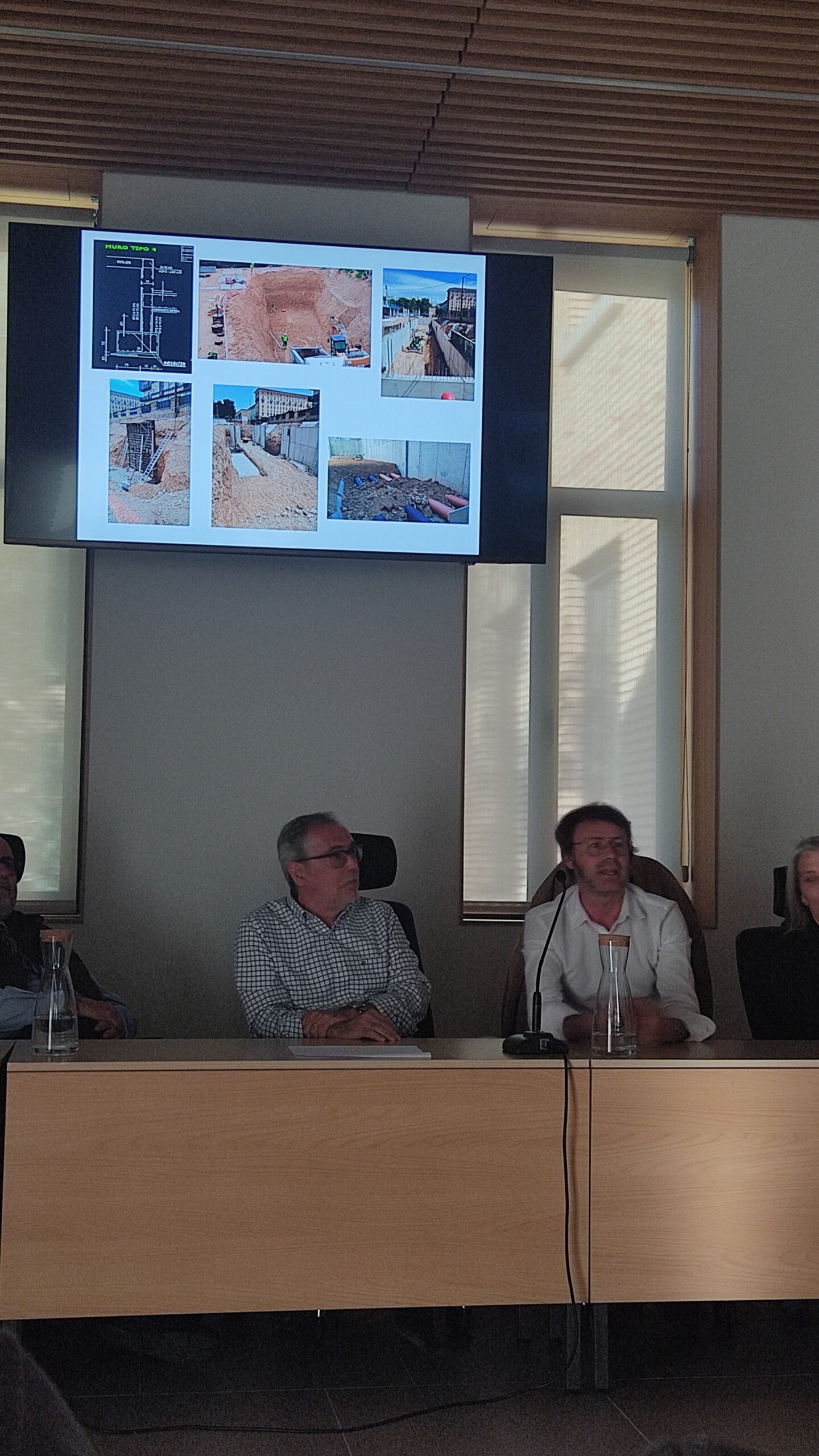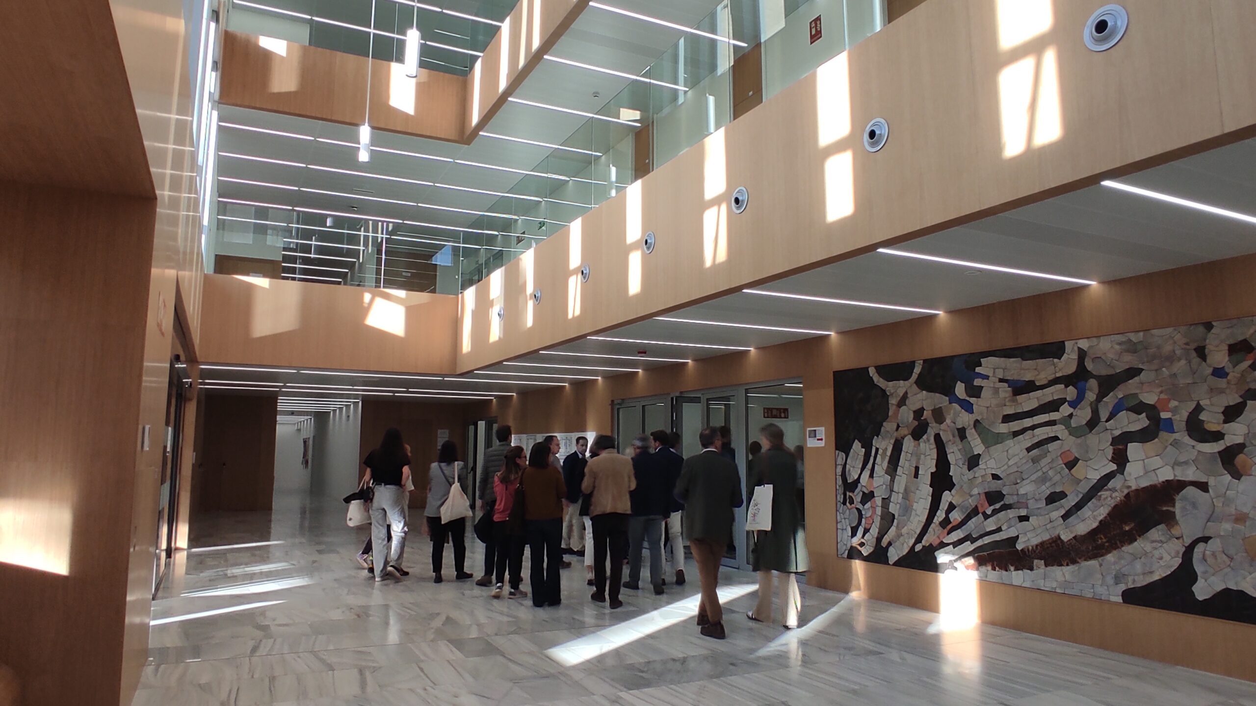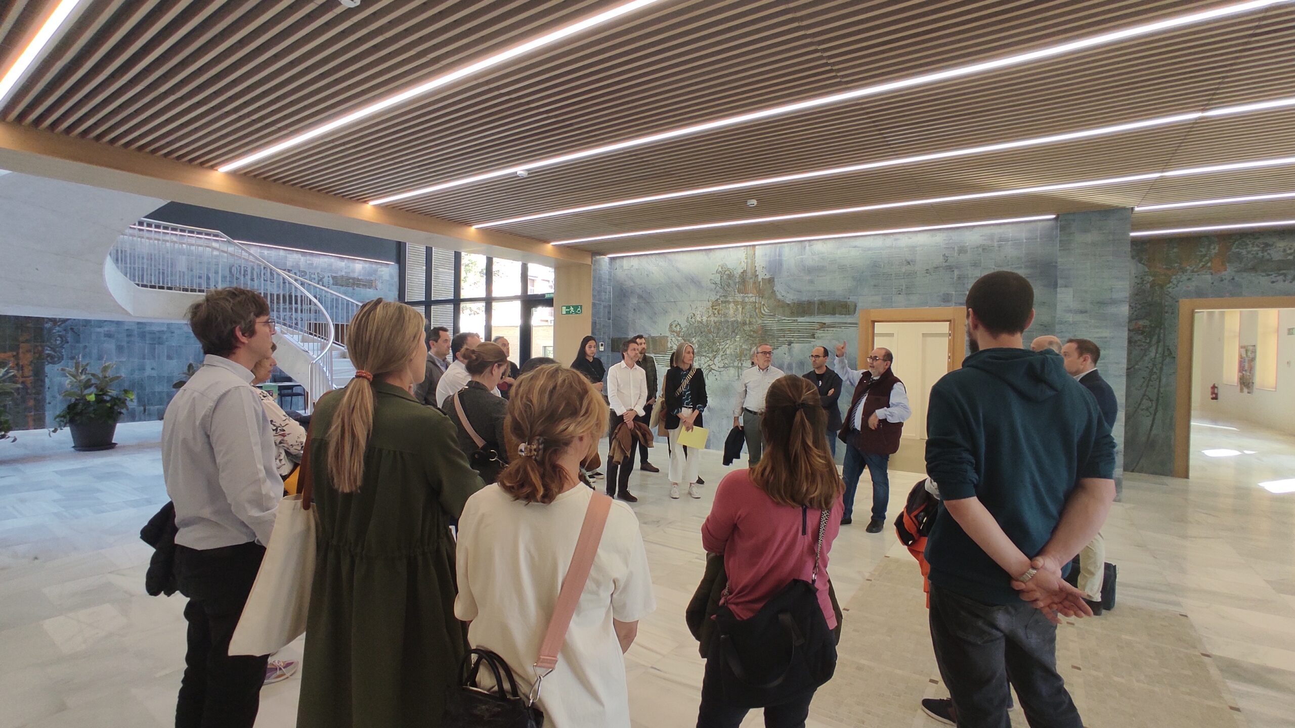 La visita estuvo guiada y explicada por integrantes de la Unidad Técnica de Construcciones y Energía de la Universidad de Zaragoza, Carlos González y David Cambra. La Facultad de Filosofía y Letras de la Universidad de Zaragoza, se presenta en la actualidad como un edificio con consumo de energía cero o nulo ECCN, tras la reforma y ampliación de su edificación que le llevo a alcanzar el Premio a Mejor Iniciativa Pública en Edificación en la pasada Gala Aragonesa de la Edificación. Se trata de un proyecto innovador con los mejores estándares de diseño, eficiencia energética de las instalaciones, circularidad del proceso constructivo, confortabilidad y accesibilidad universal, cuyo arquitecto de la obra fue Jaime Magén.