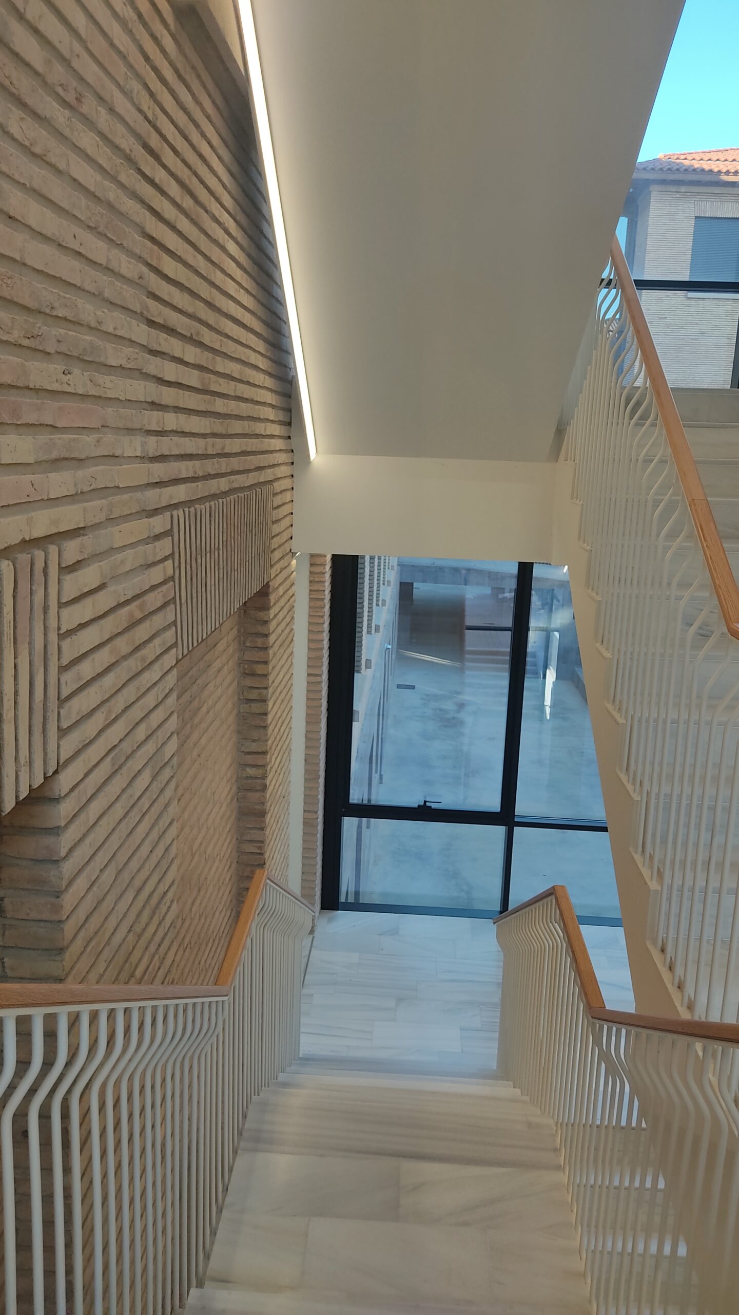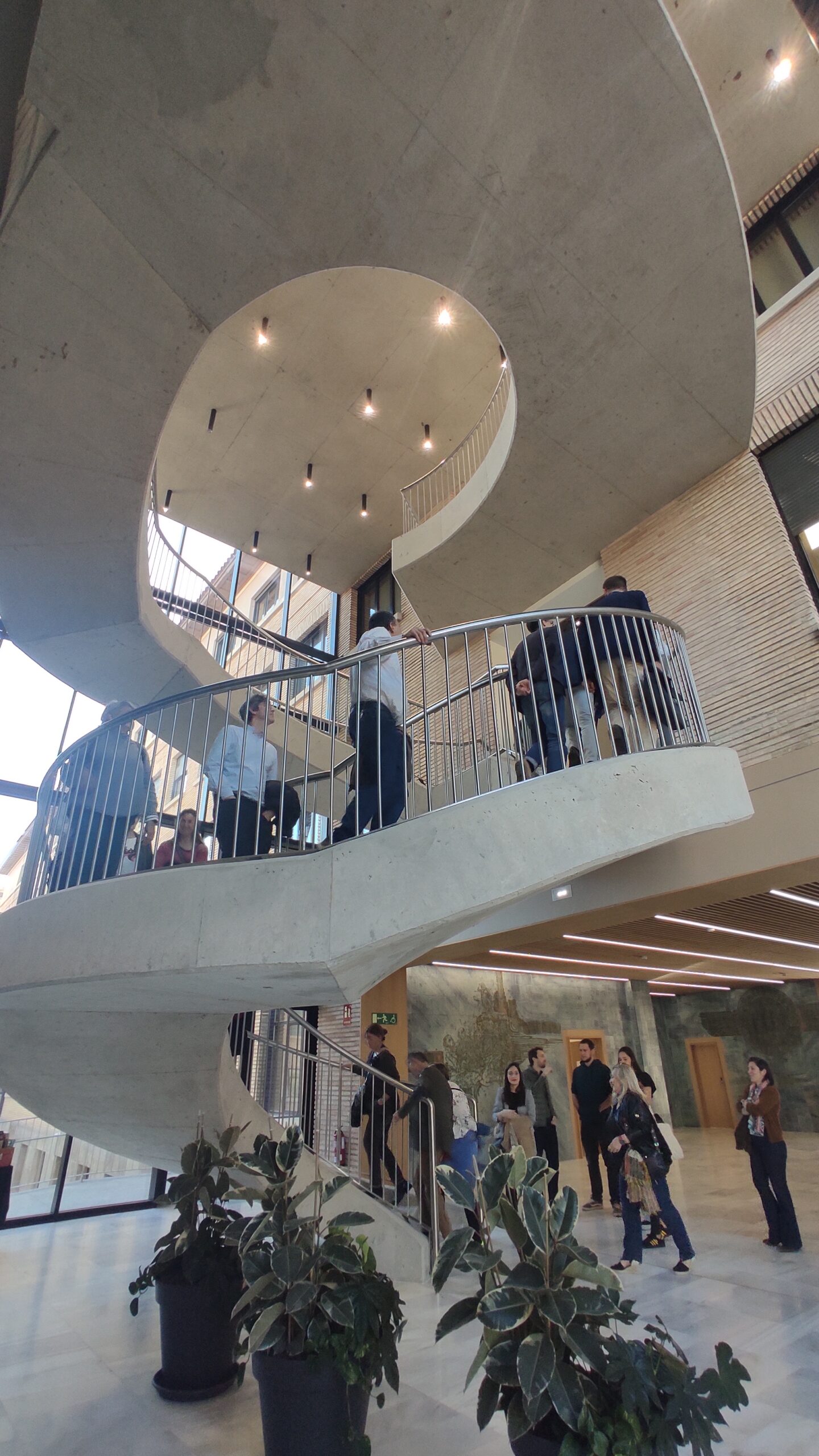 Igualmente, nuestros compañeros profesionales de la arquitectura técnica, David Mateo, Fernando Galindo y Marina Bonet, fueron galardonados con el Accésit a Mejor dirección de ejecución de la obra en la misma edición de la Gala Aragonesa de la Edificación, por su actuación en los trabajos de rehabilitación integral de esta Facultad. E igualmente, también contamos con su presencia en la explicación de esta visita, ofreciéndonos su punto de vistas desde el prisma de nuestra profesión.